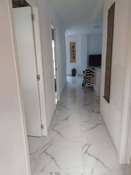 La reforma de Paco dio como resultado un hogar moderno, con colores claros, suelos de gran formato, una cocina abierta con isla y baños completamente renovados con ducha italiana.