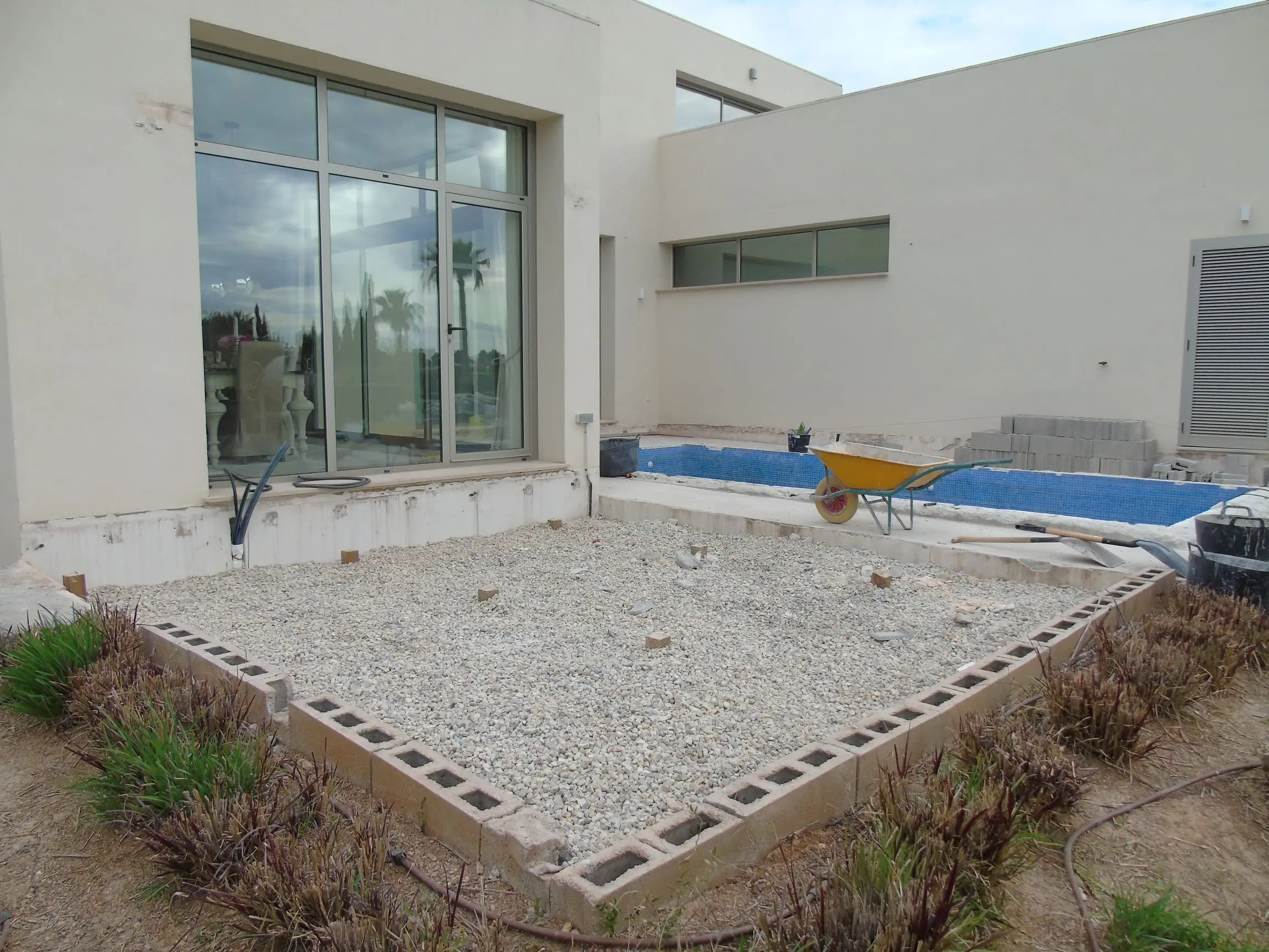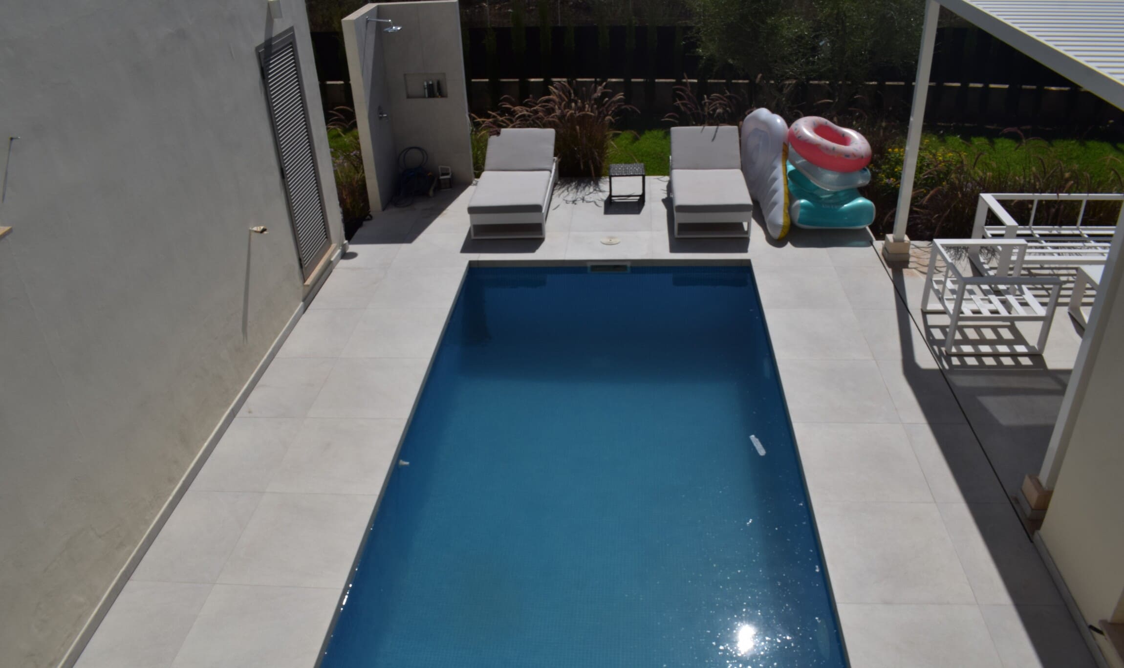 En una finca familiar en Sa Pobla, rodeada de campos y tranquilidad, se llevó a cabo la construcción y diseño de una piscina a medida, pensada para complementar un espacio exterior de uso residencial.