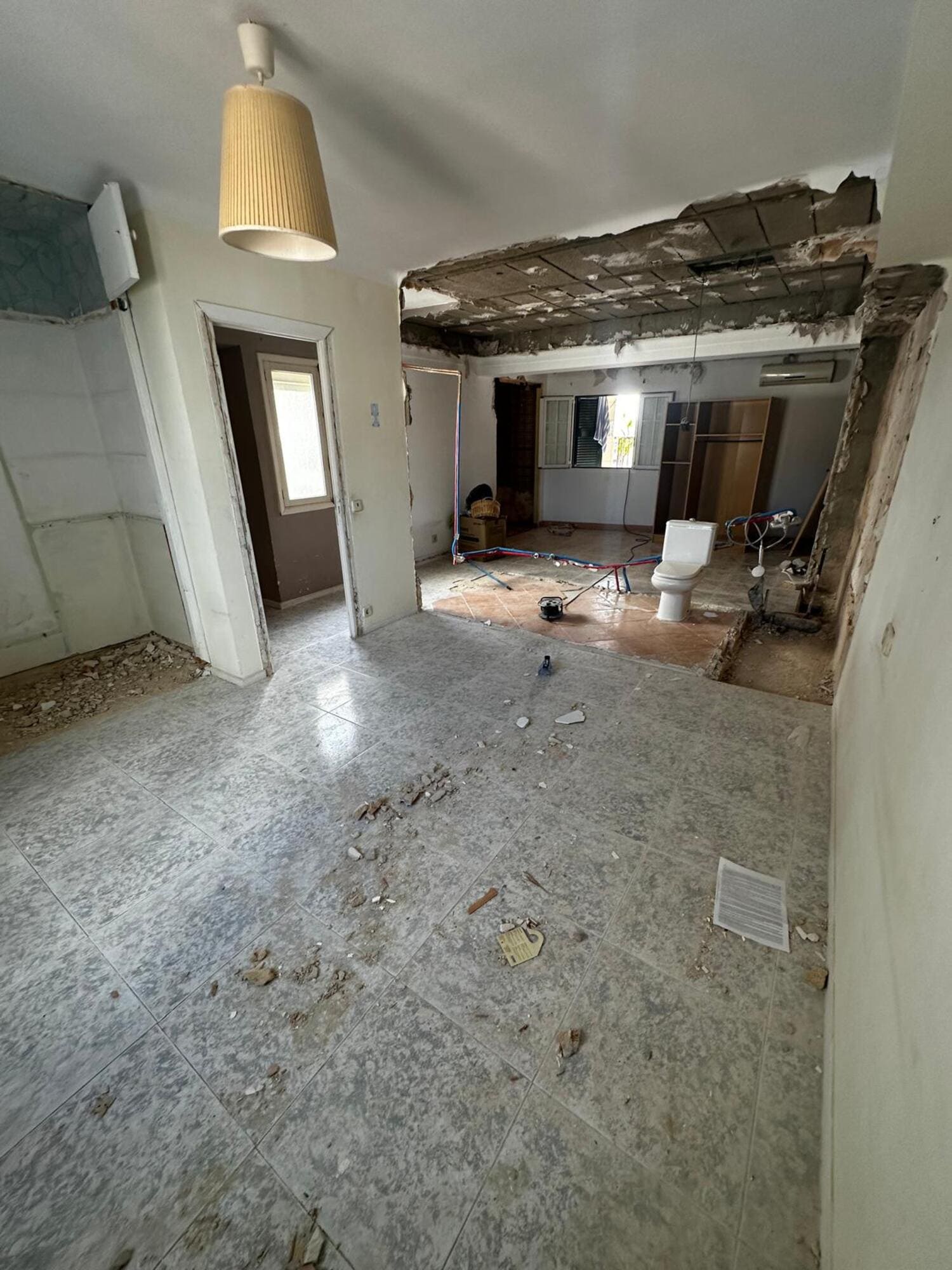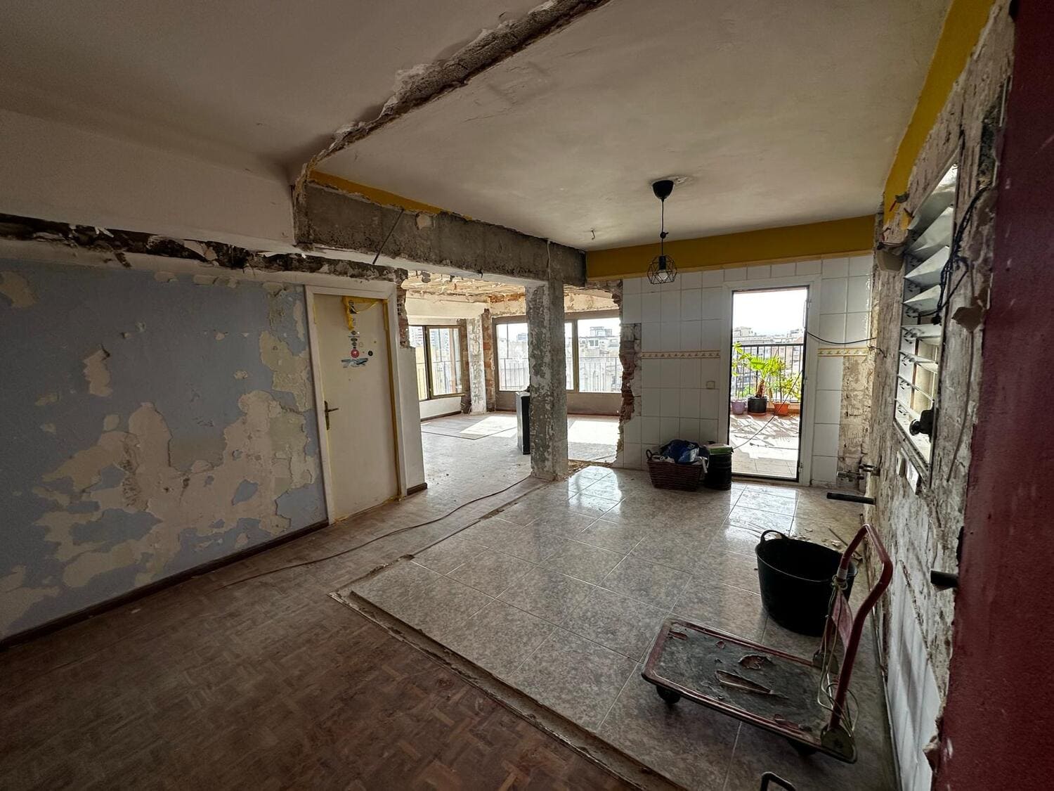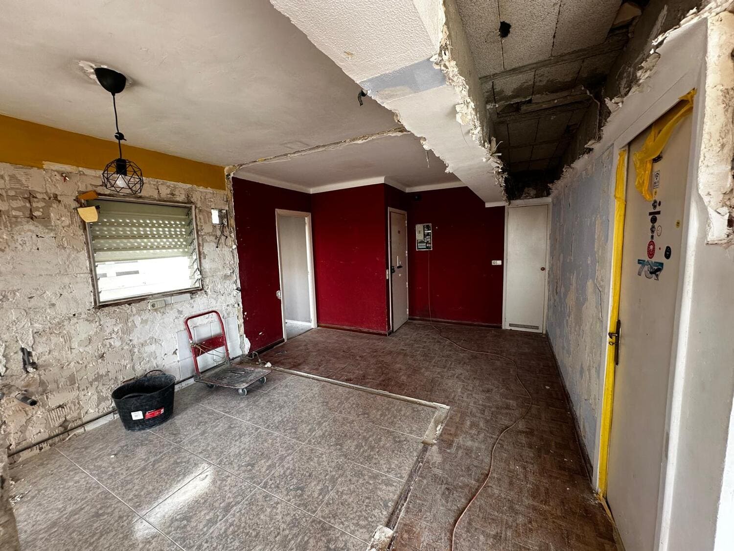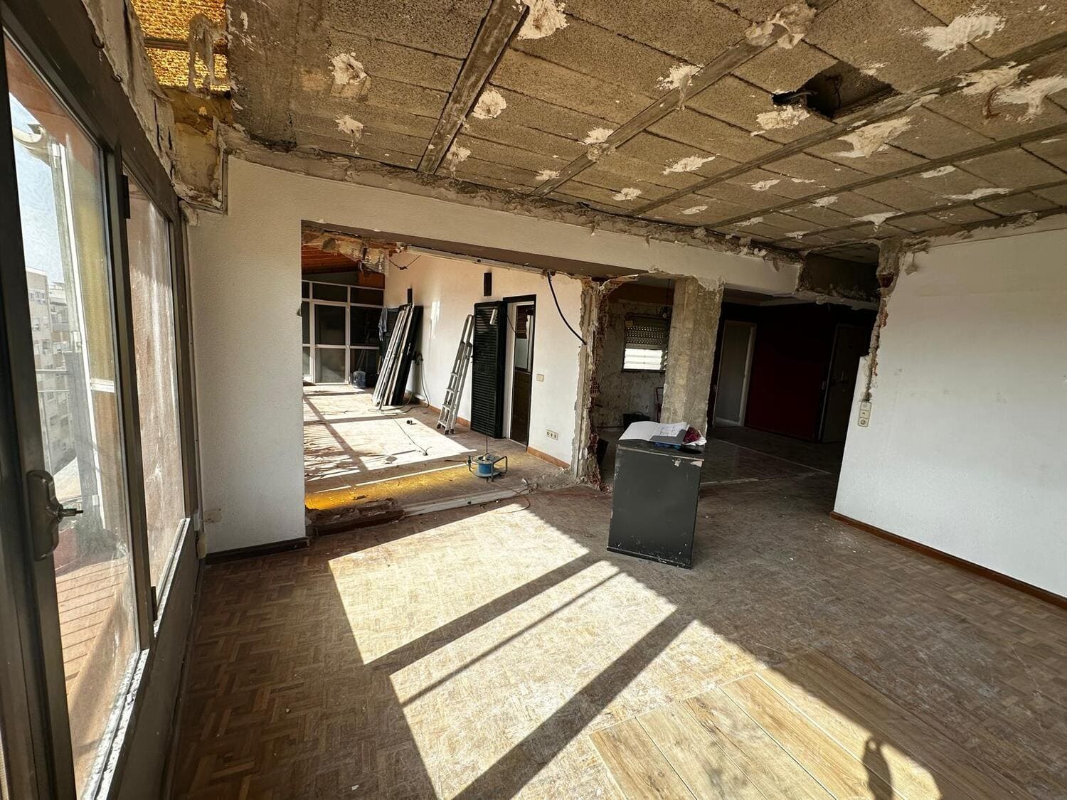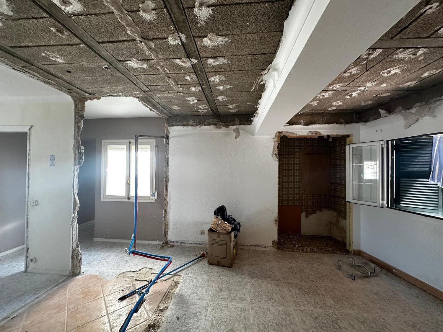 El inmueble se encontraba en estado de abandono parcial, con humedades en varias zonas y techos agrietados.